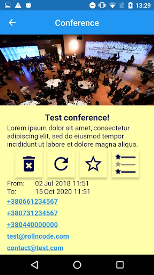 Skeder allows you to view conferences in a comfortable way and add own conferences. Entering conference, you will see all detailed info about it as long as all events and speakers of this conference. You can add conferences or events to favourites and see what place in time they take. Adding conference to Skeder is very simple. You can scan appropriate QR code for fast downloading or enter link to conference manually. If you want to create your own conference, you have to implement JSON with this structure : https://pastebin.com/raw/ESfpGgB1 and than share it with link or QR code with anyone you want.