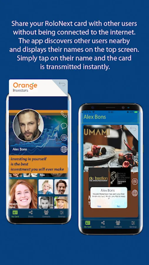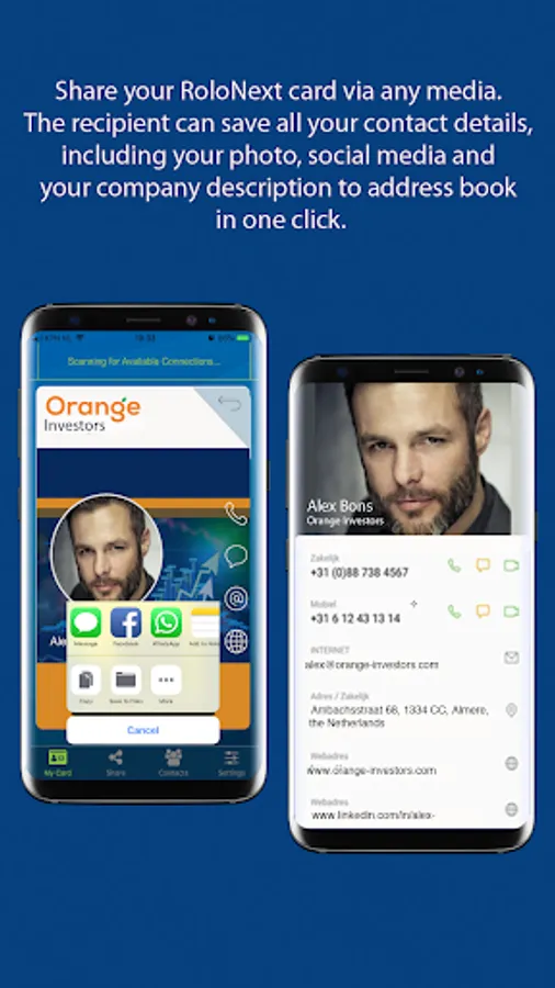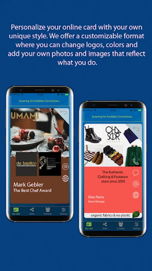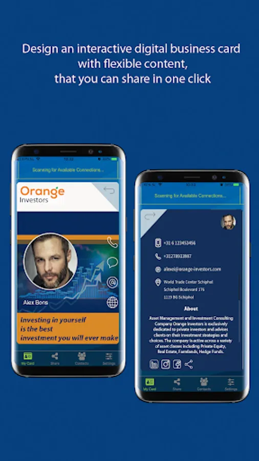 Create your digital card and share it with anyone in a simple way! It works on any mobile and without internet.