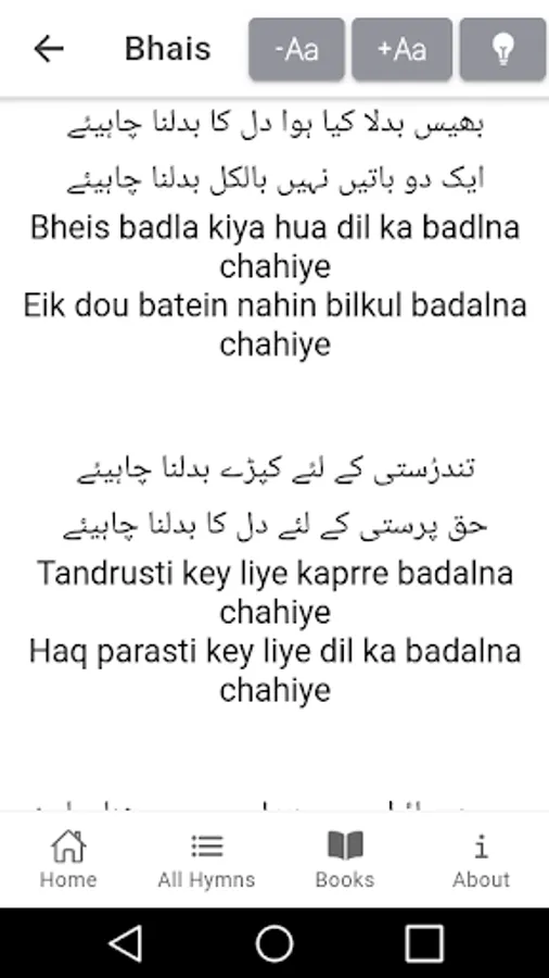 Feel free to search content in the app, and adjust the text size and background colour of the screen to your liking to enjoy the app. You could also share the hymns with others using the share button.