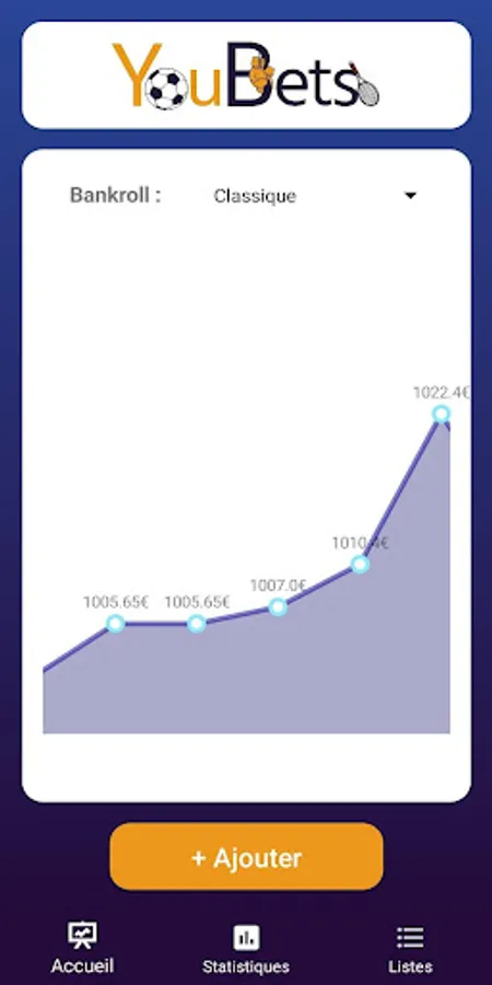 You want a real management of your sports bets? Youbets allows you to centralize them all, to access different statistics such as ROI, OCR, teams and the most profitable sports and to manage your bankrolls as well as possible.