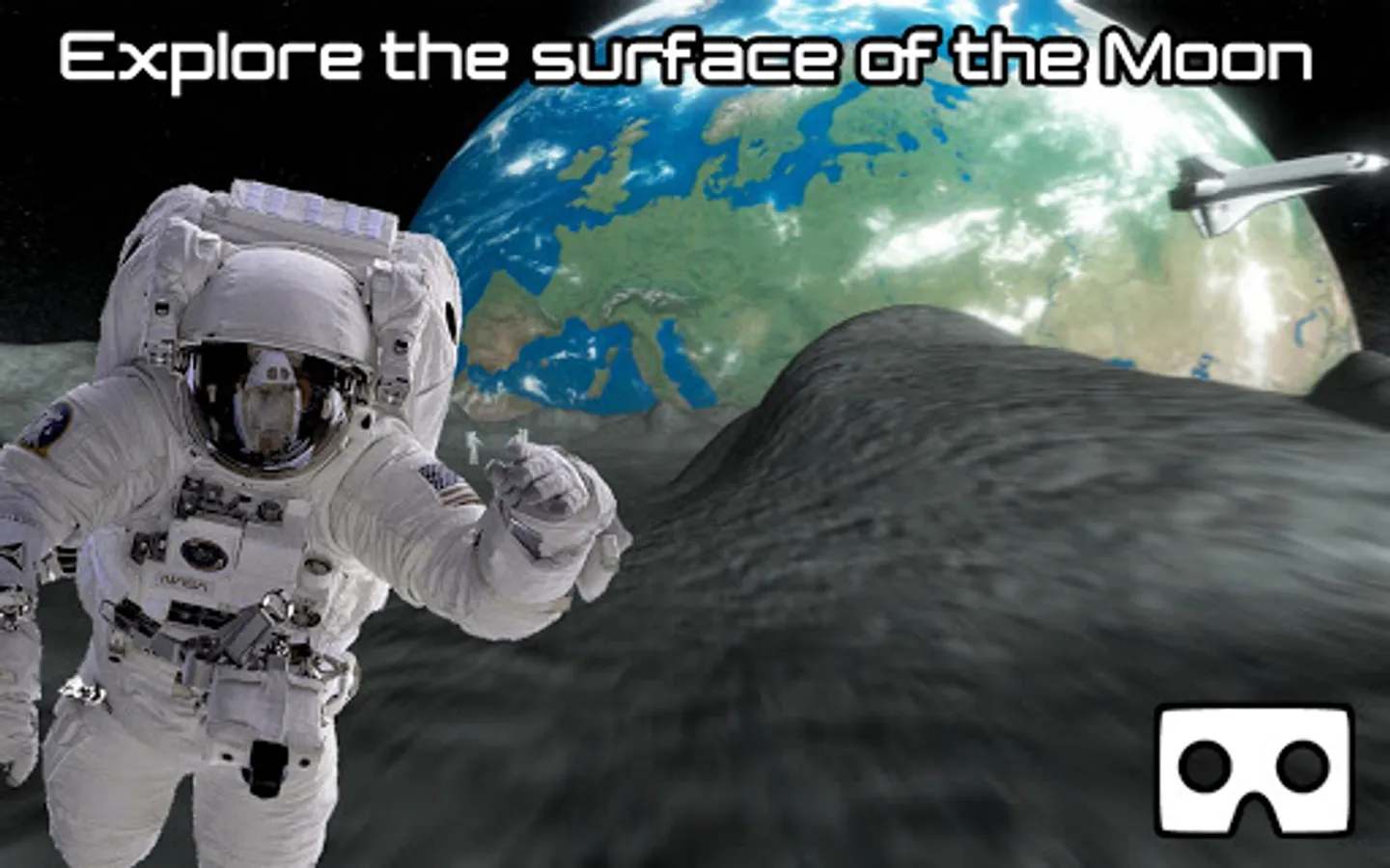 Wanna know how it was for the first man walking on the Moon? You can now by installing this virtual reality game. You don't need any joypad to play our game. Game works with all VR glasses.