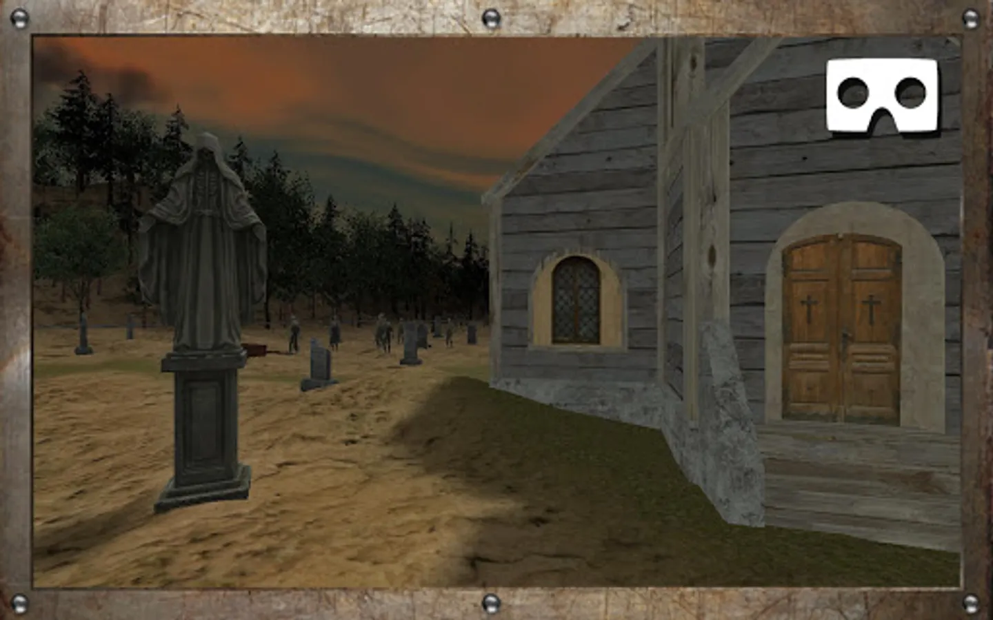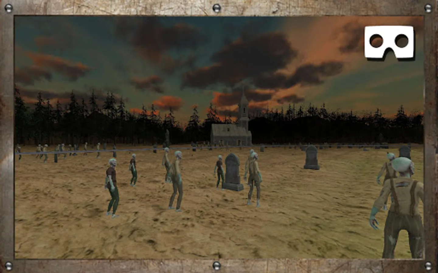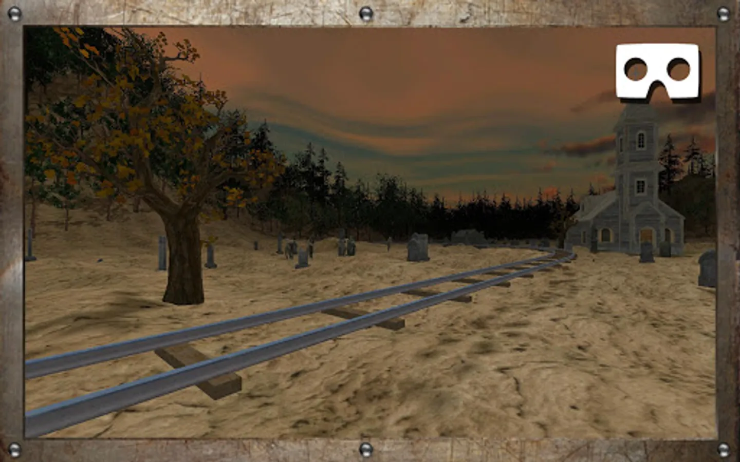 Horror themed train ride through haunted forest and forsaken graveyard filled with evil zombies for Google Cardboard or similar VR headset. No touch controls needed for this VR game.
