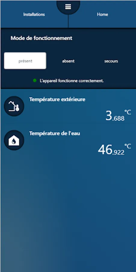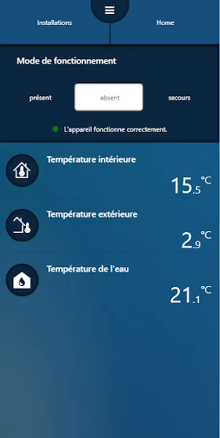 Thanks to this application, you can remotely control the heat pump of your second home. Two temperature levels can be chosen depending on whether you are absent or present in your home.