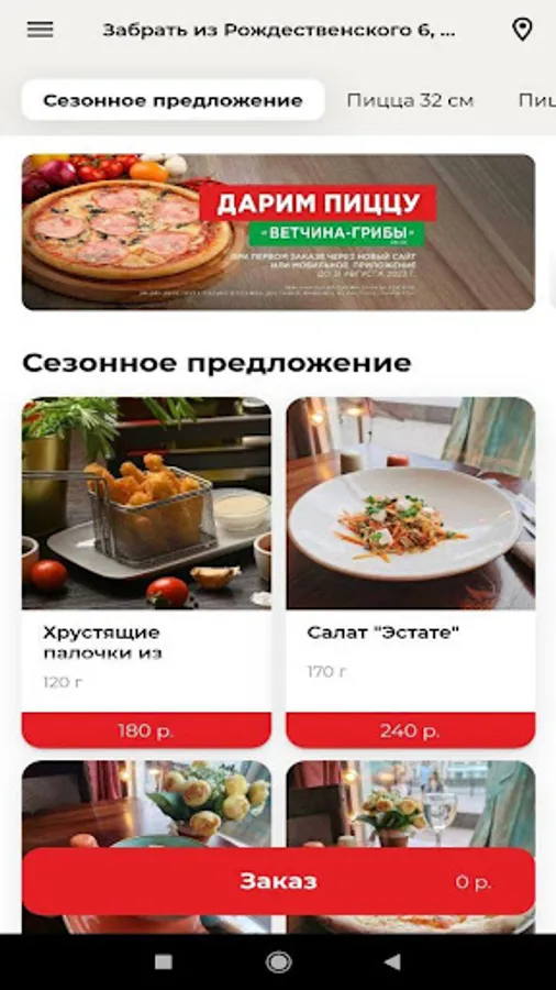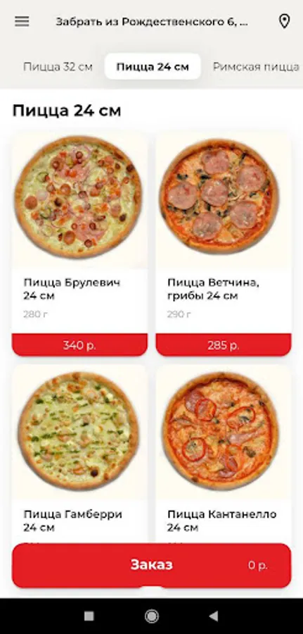The menu of the pizzeria has more than 30 types of pizza with various toppings, as well as snacks, salads, soups, pastas, hot dishes, rolls, pies, desserts, semi-finished products and much more. Everyone will find what they love the most!