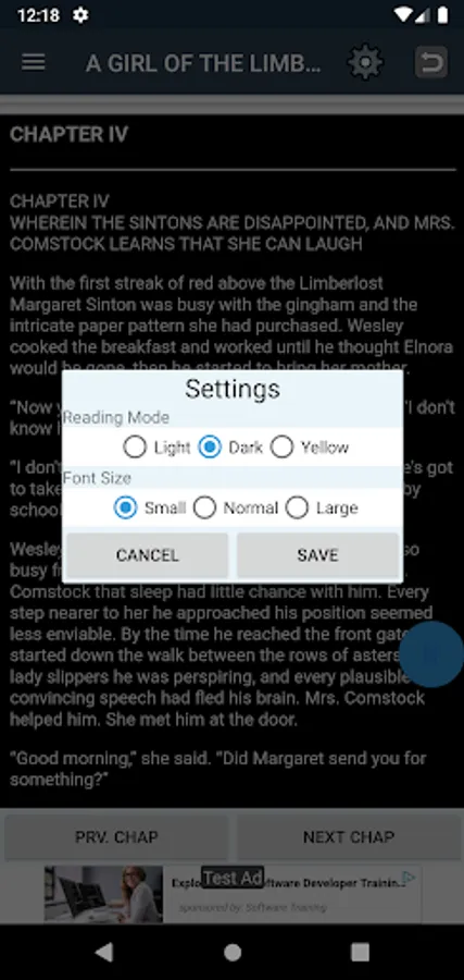 Select from white, yellow pages, or black (dark mode) background and enjoy unlimited reading of love novels.