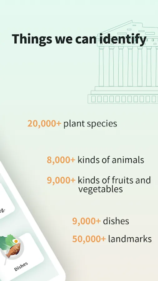 The number of identified items totals nearly 100,000, including plants, animals, fruits and vegetables, dishes and landmarks; the number of categories and items we support is increasing every day.