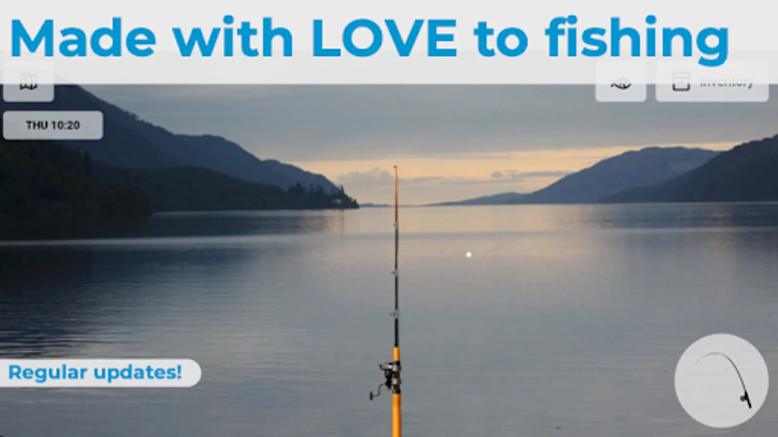Back to the Menu and go Fishing. Open fishing spot. Focus on nature-sound and look on the environment. Our fishing location scenes are static photo. The Fishing simulation game atmosphere begins when you open an Inventory (top-right) and Select tackle.