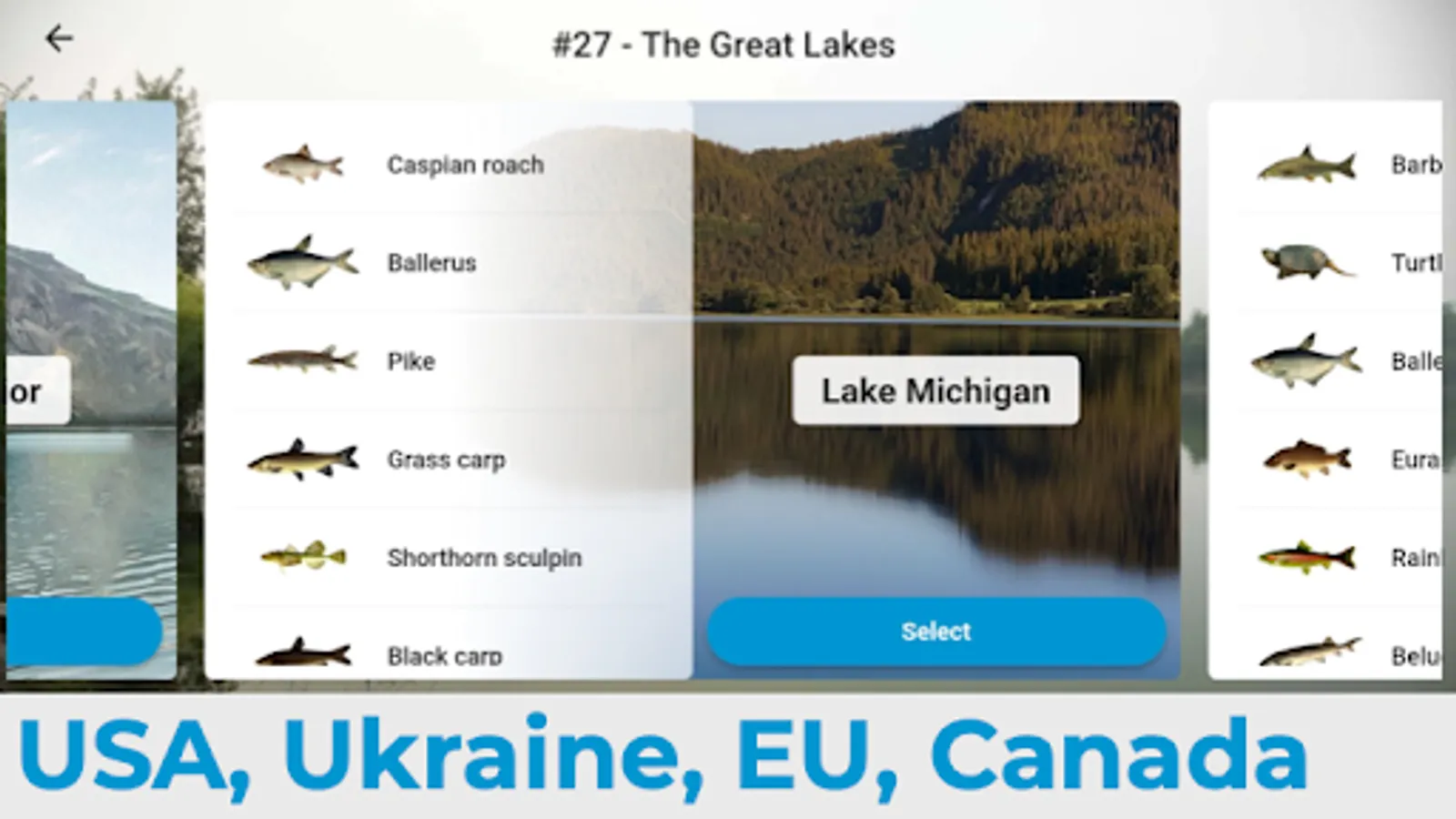 The Fishing world is 5 large regions: USA, Canada, UK and Europe, Ukraine, 404.