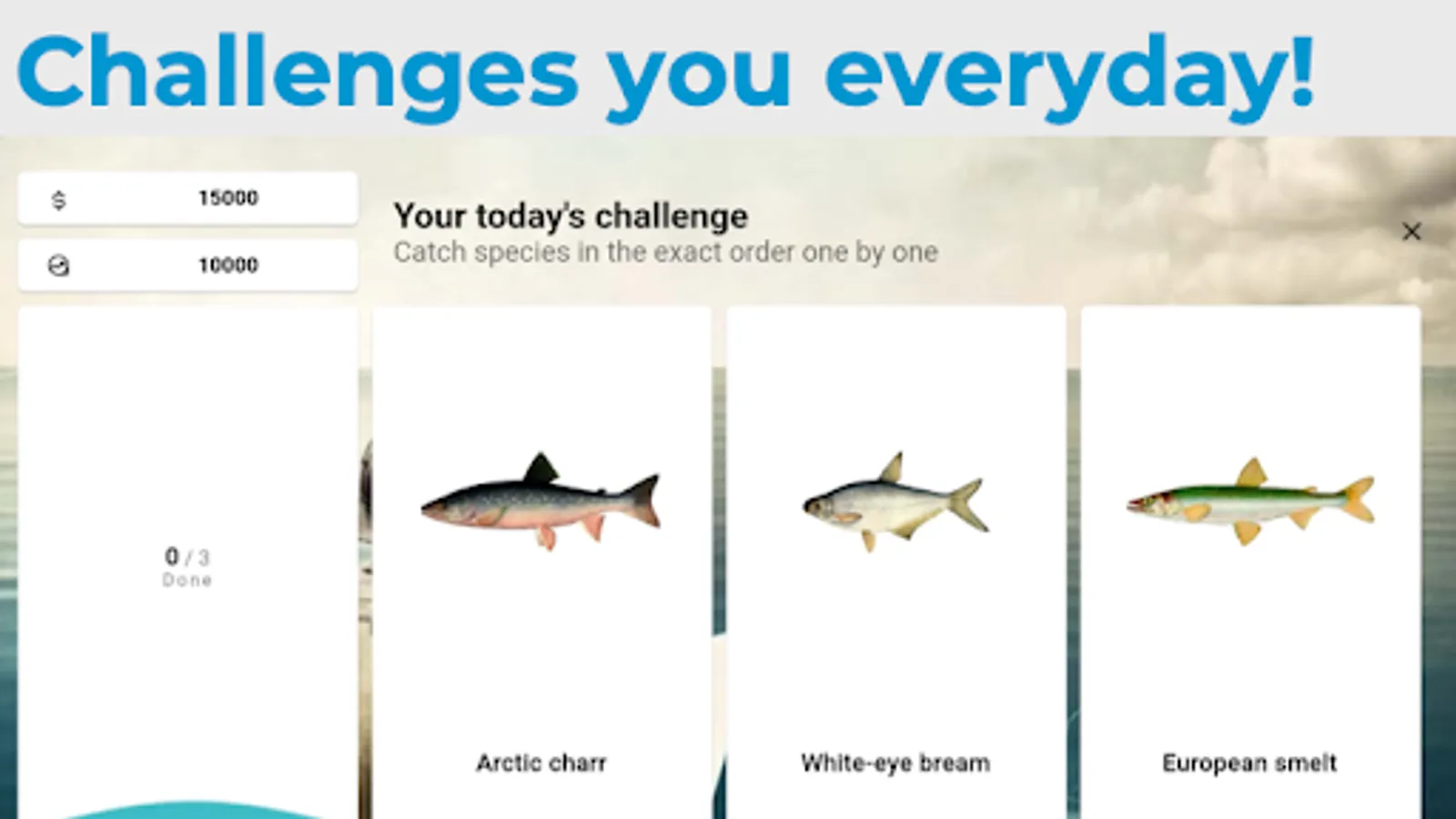 The game challenges you everyday. Select your Daily Fishing Challenge.
