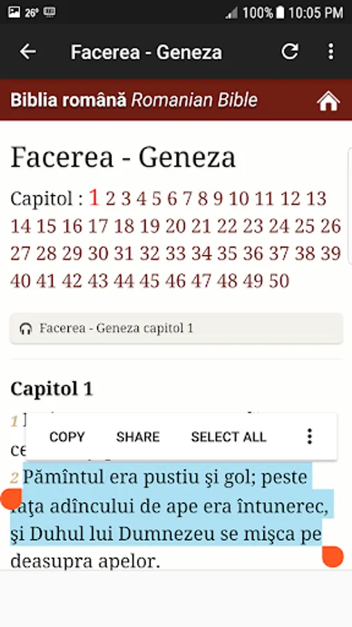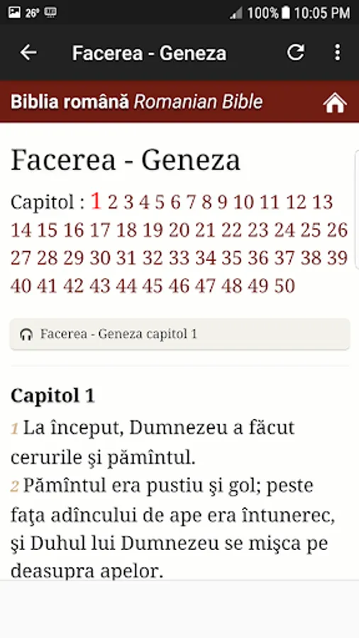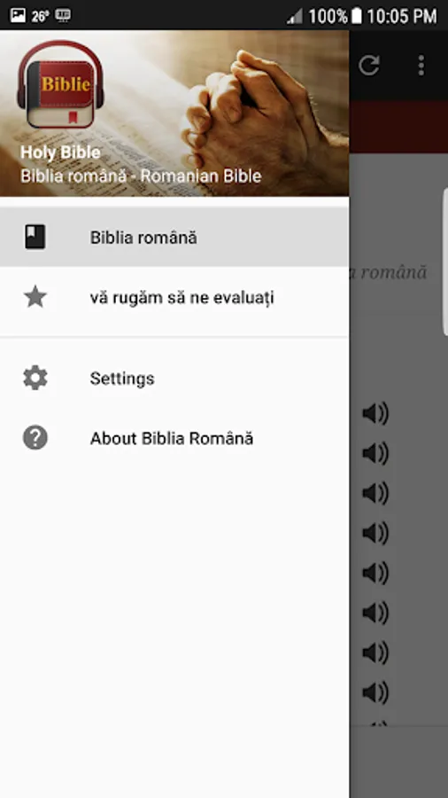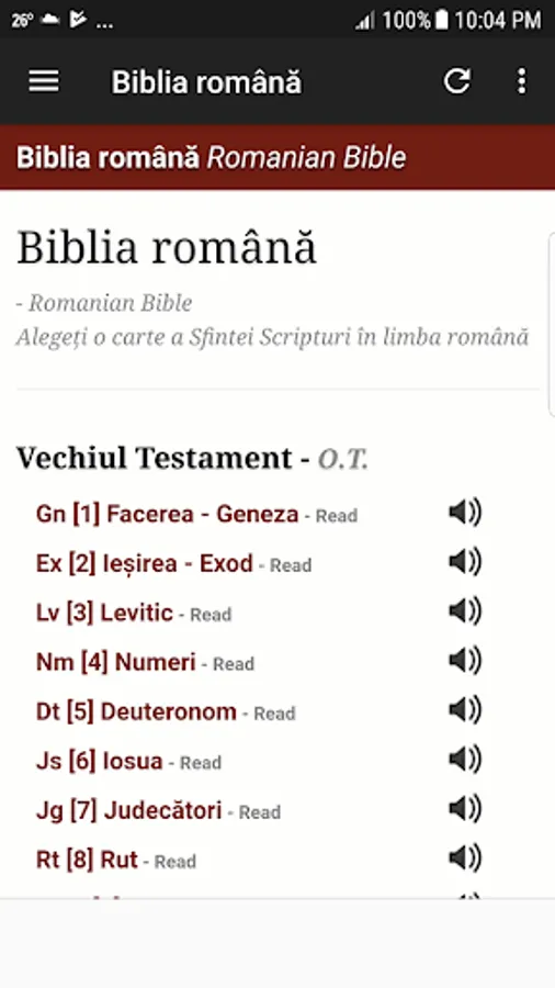 Romanian Bible (Biblia Română) – The Holy Bible in Romanian language. This Romanian Bible app was created to give everyone a new experience of reading the Holy Bible. Enjoy this Romanian Bible application in android for free, which contains the Old Testament and New Testament with text and audio version in Romanian language.