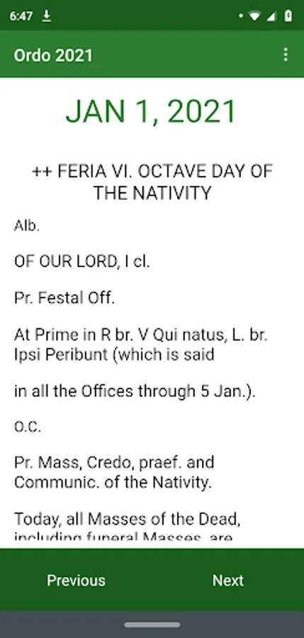 The 2020 Ordo app gives immediate access to the Ordo listing of every day of the liturgical year. [NB: an ordo explains how to set one's missal and breviary, but does not offer readings or prayers, except some special blessings, such as of throats on the St. Blaise Day].