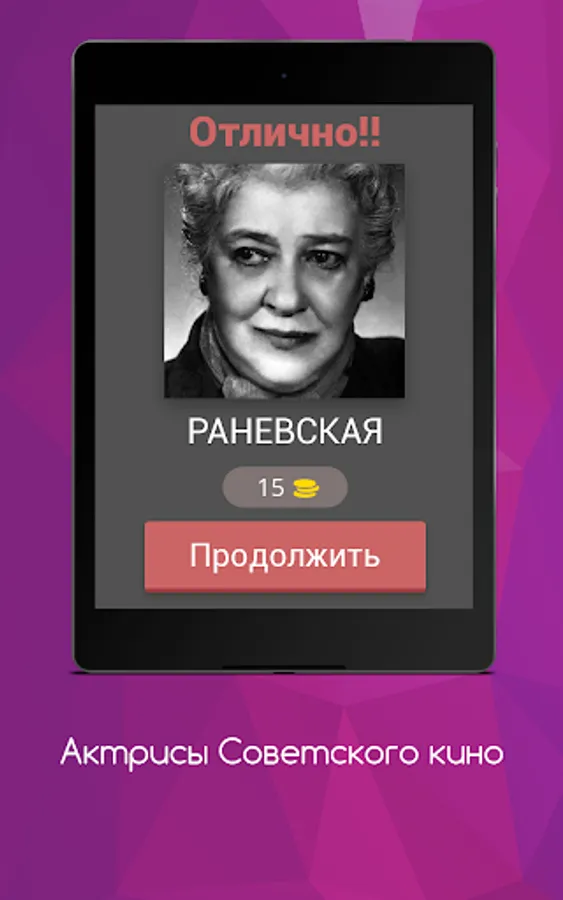 Keywords that will help you find our application: quiz, trivia, guessing game, "Actresses of Soviet cinema", Soviet cinema. 🌟