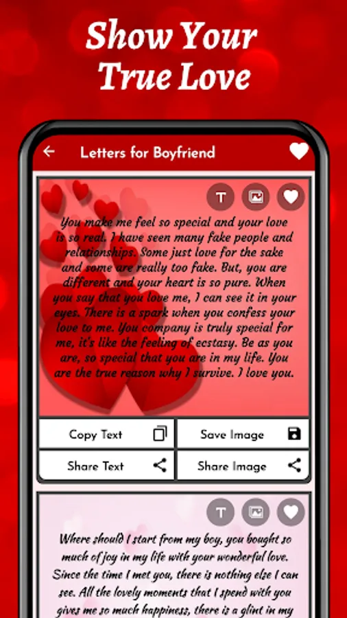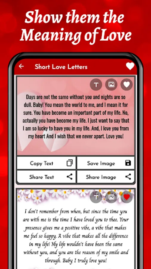Send the most amazing and heartfelt Valentine's Day messages, love messages, love poems, cute letters for him, and more in this amazing love letters app. What's more, you can download and save these amazing love letters and send them as a personalized message to your special someone, or share it across your various social media platforms.