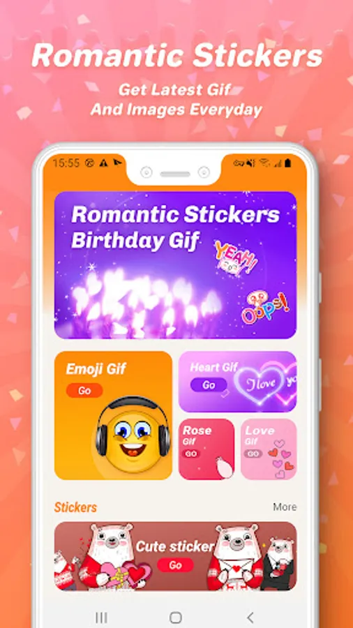 Let's enjoy Romantic Stickers Birthday Gif. It is specially created with beautiful realistic and beautifully animated backgrounds and it has tons of funny and lovely gifs.