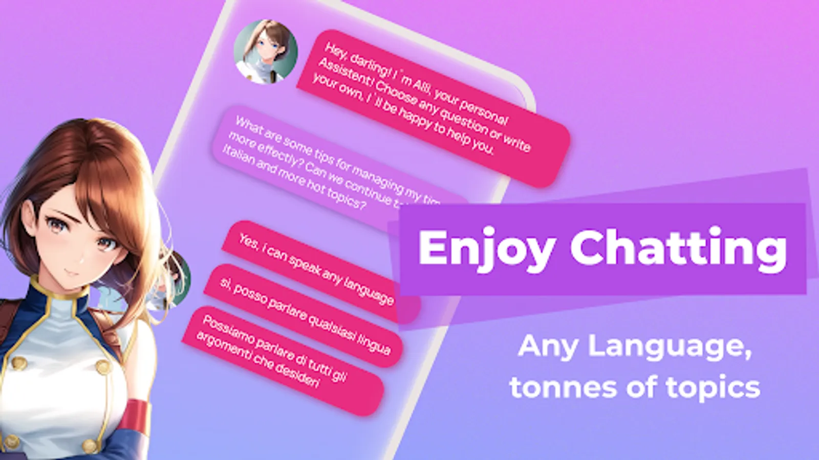 Original love has no language bounds! You can chat with your AI gf whatever language you speak. They will show complete understanding and loyalty in any language you prefer. Our AI girlfriend simulator guarantees friendly, smooth, and meaningful conversations so that you will feel complete naturalness chatting with your virtual girlfriend in a romantic atmosphere. ๐ฌ