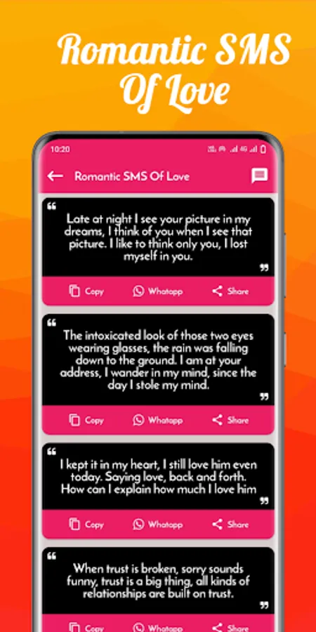 In love there is anger, shame, pain. Your loved one is suddenly upset or angry or bitter towards you, and you want him to feel better in a moment. At this time, if you can send him a two-line message on his mobile about the sweet love of love, then your work is done. And to make this task easier for you, we have beautiful words written with the rhythm of love, In addition, there are romantic love message apps for you written in the form of love rhythms with love messages. And today we have brought another new app from which you can easily copy and send SMS.