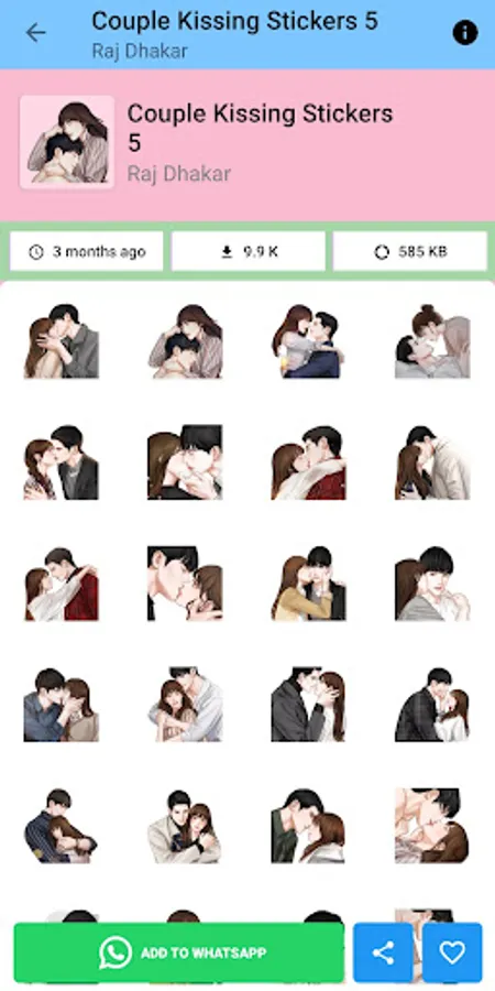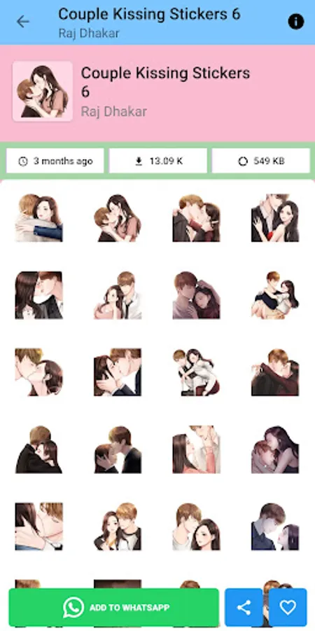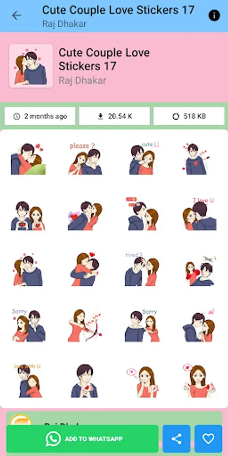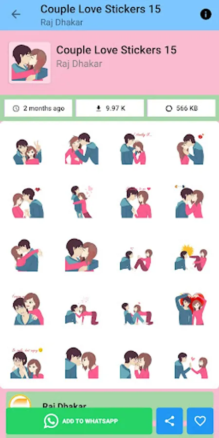 Add some personality to your chats with our collection of fun and unique stickers! Our app includes a variety of stickers for every occasion, from love and romance to birthday celebrations and holidays. Simply download the app, choose your favorite stickers, and start sending them to your friends and loved ones through WhatsApp. With constantly updated collections, you'll always have new stickers to choose from. Download Love Stickers App and start adding some flair to your messaging!"
