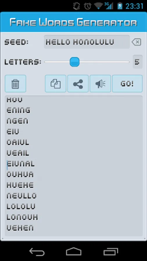 Rock the slider to the right if you want longer words to be generated.