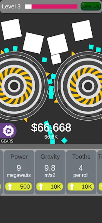 • Earn gems by grinding and shredding the falling bricks and balls of materials. Stronger materials are worth more!