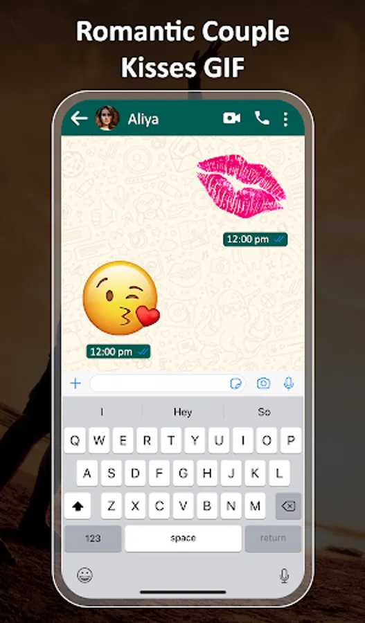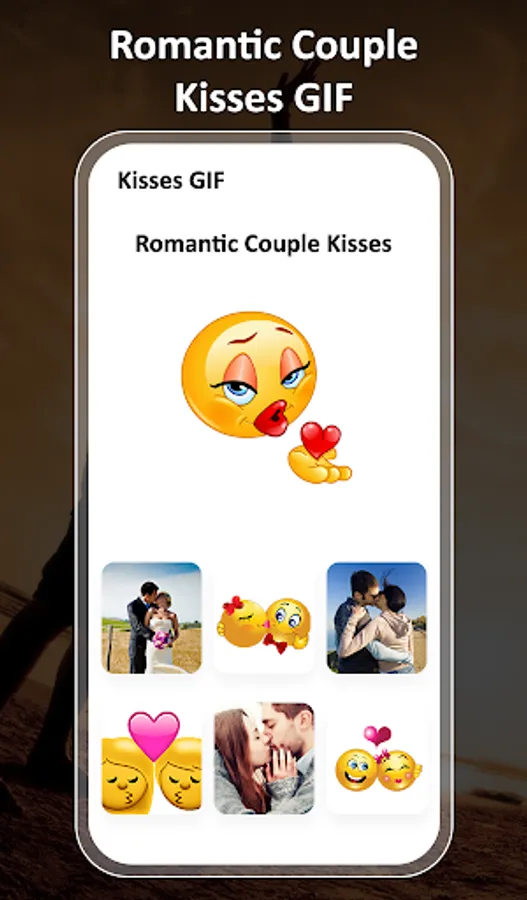 A Kiss is a touch or pressing of one's lips against another person or cheek, head, hand or other body parts of another person, animal or object. Send Kiss Gif Images for Chat to anyone you Kiss. Make your chat more loving and special one using this app.