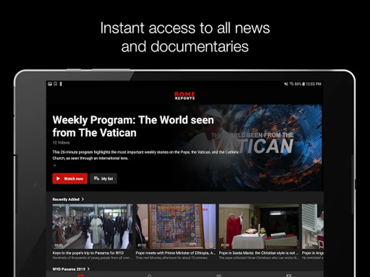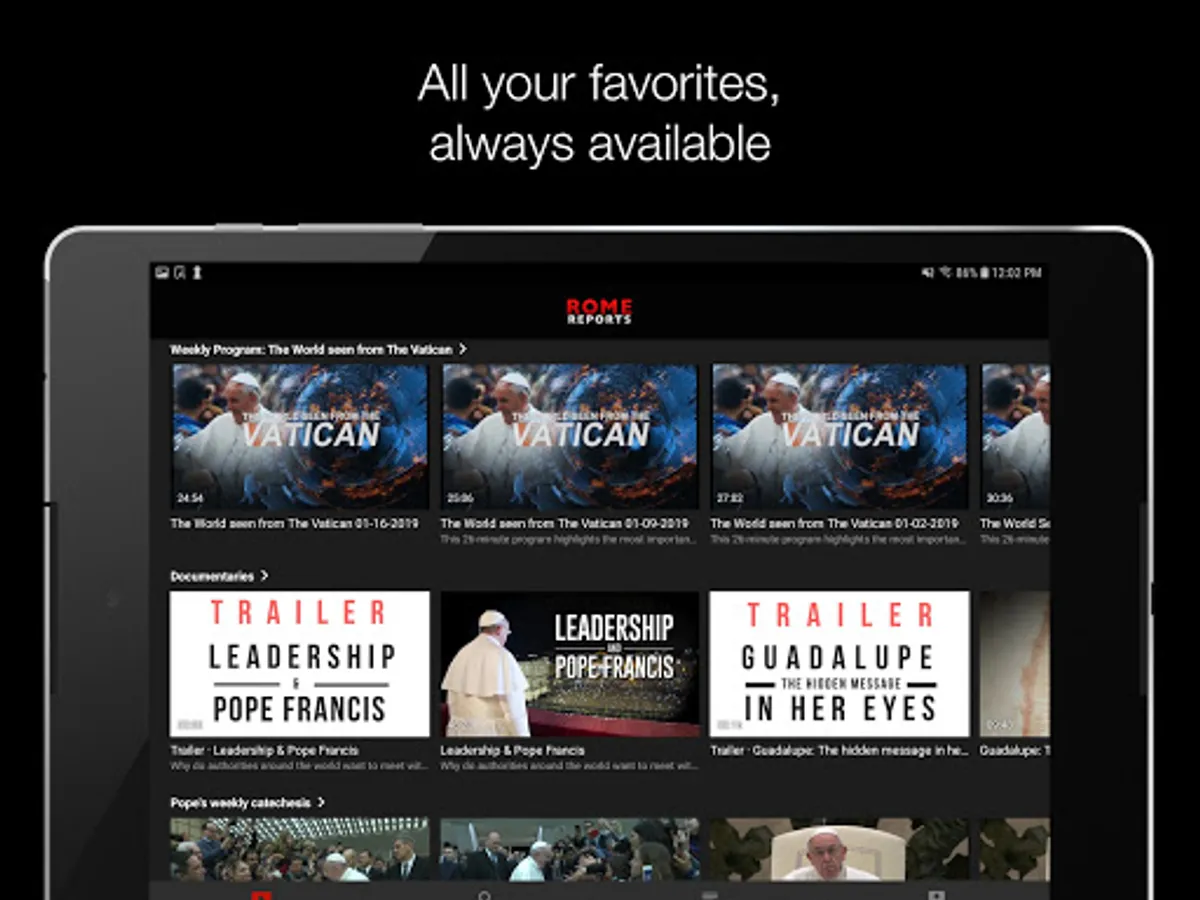 Every day you will get the latest news straight from Rome, now in HD and without advertising. Every month, you will also receive a new documentary and the keys to understanding what is happening in the Vatican and in the Church.