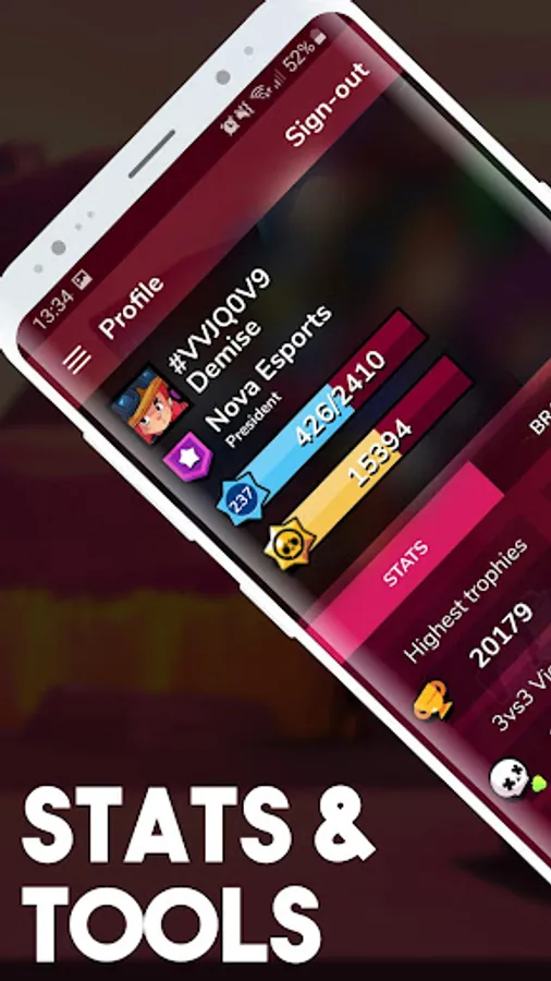 🔸 Profile Stats & Analytics: Keep track of all your progress in the game and Brawlers, you can also follow other players, win rate, level, ran, etc.