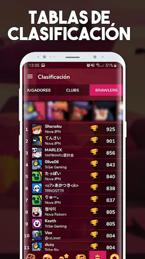 🔸 Tops List: Follow your favorite Brawlers and track their progress.