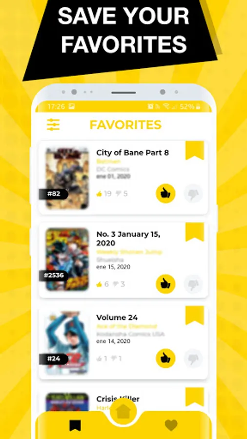The latest comics: discover new releases! It is an application designed to discover the best comics publishers and keep up to date with the most recent releases of your favorite comics, the best superheroes, the best histories, among many more. Save your favorite comics, rate them and help more people know them. Discover which are the best rated comics.