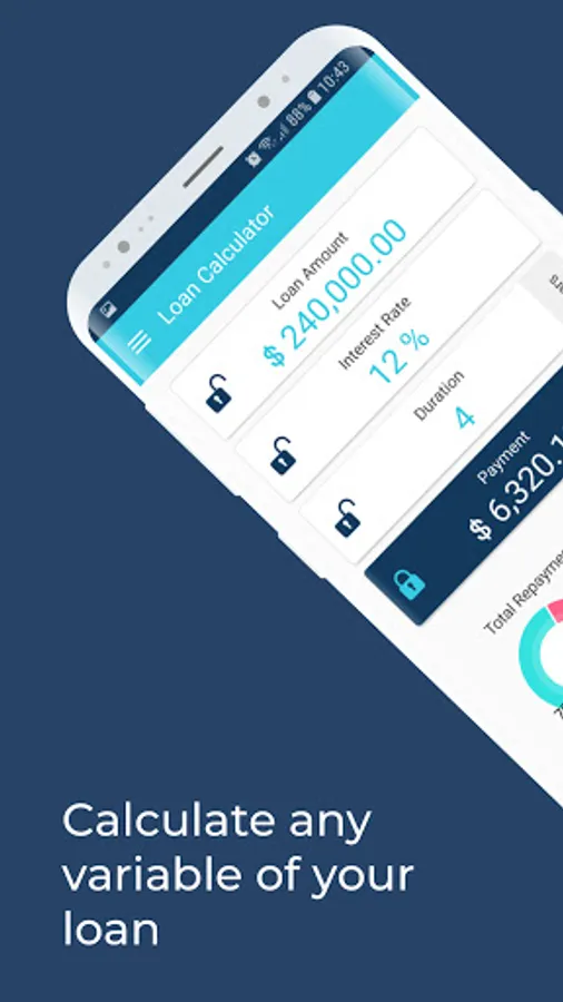 π Our app lets you calculate any variable: interest rate, monthly payment, duration or loan amount; giving you as result the amount of interest paid, the total cost of credit, and amortization.
