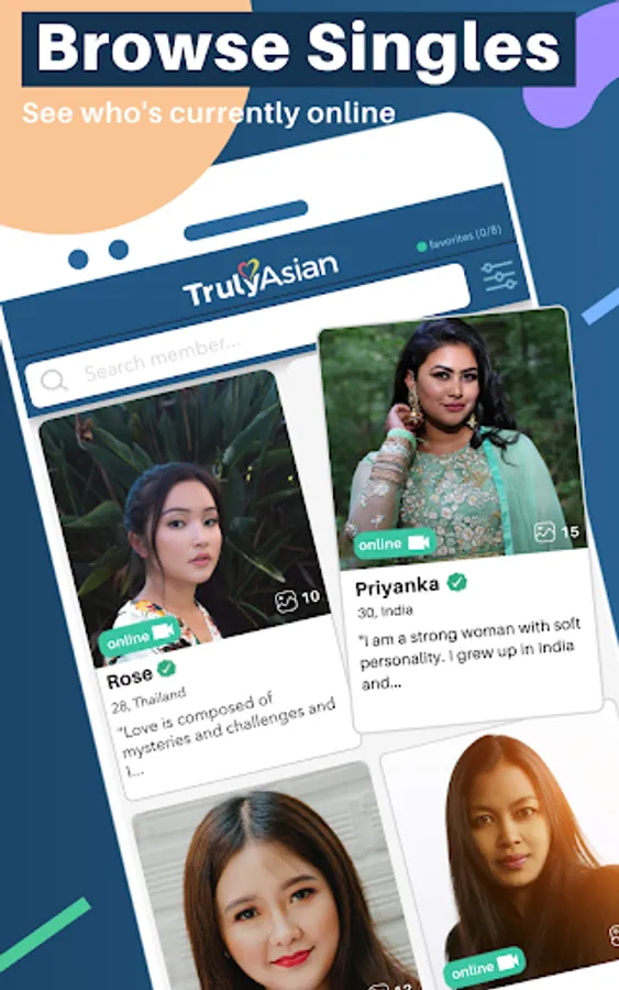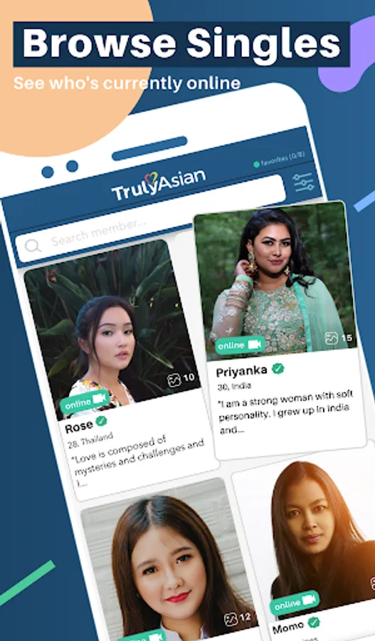 The best Asian dating app. TrulyAsian continually connects people throughout the world with Asian singles from Indonesia, Thailand, The Philippines, Singapore, Hong Kong, and many other Asian countries whenever and wherever. With a large and curated user-base, whether you’re looking for serious relationships or marriage, you’ll surely find your perfect match here.