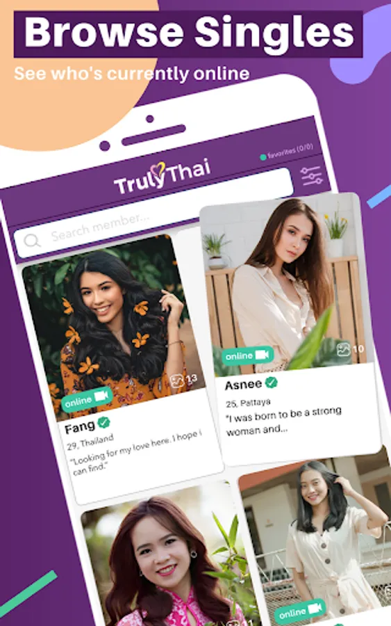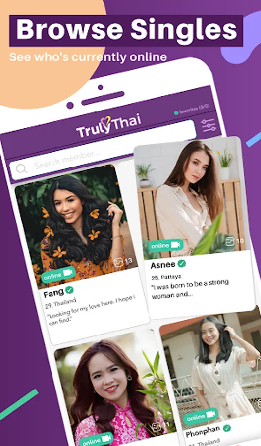 The best Thai dating app. TrulyThai continually connects people throughout the world with Thai singles from Bangkok, Chiang Mai, Phuket, Pattaya, and many other cities in Thailand whenever and wherever. With a large and curated user-base, whether you’re looking for serious relationships or marriage, you’ll surely find your perfect match here.