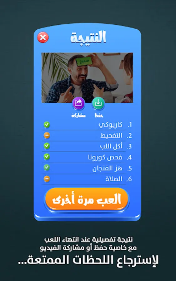 Your mobile on your head is one of the best free entertaining games in the sessions and gatherings of family, relatives and the group. It is the best word guessing game that you will ever play, from the names of famous people, to singing, to sports games and others. All you have to do is guess the word in the card on your head with the help of your friends before the timer runs out! This app contains a lot of different categories to challenge friends and keep your kids entertained for hours, all in one app! Sit, enjoy a session with those around you, challenge, guess, answer, and fill it with the most enjoyable applications.