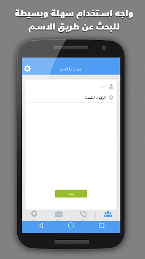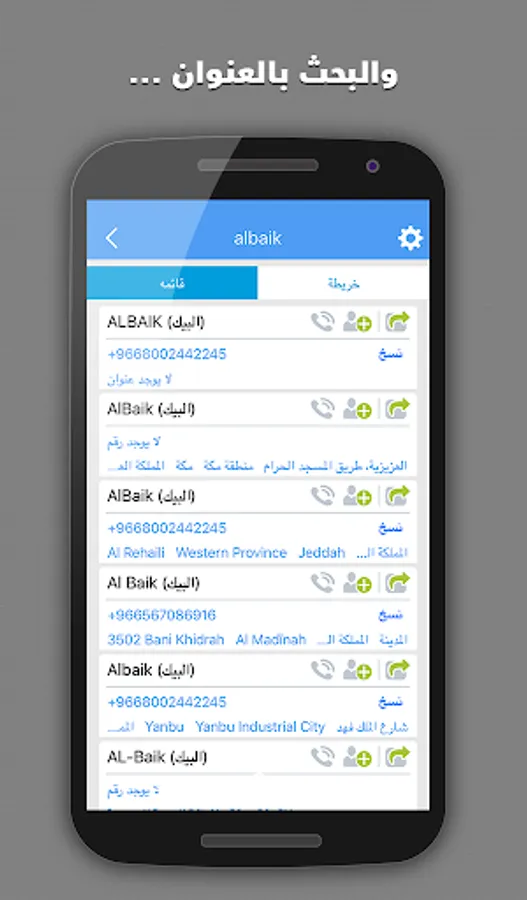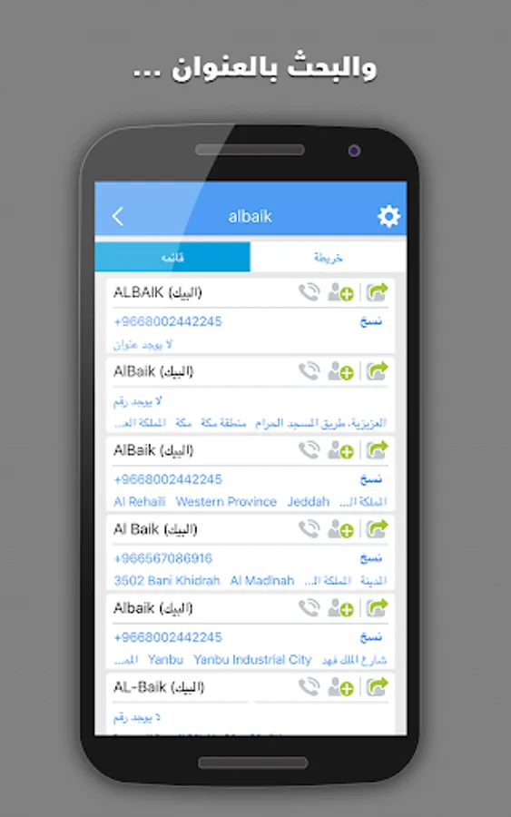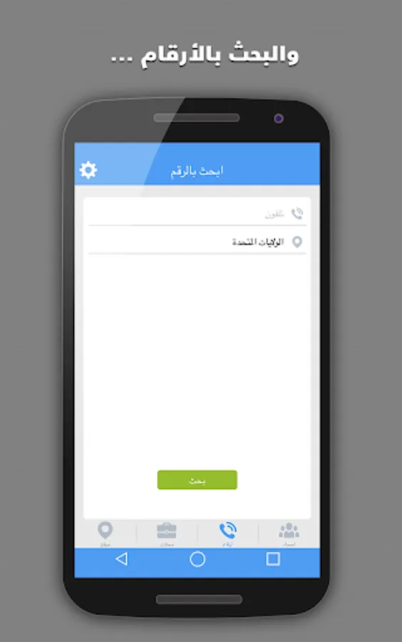 An easy and simple interface just select the type of search and start the search immediately without any complication. You can also search by part of the number and you will get a set of numbers and names. Choose the name and you will get all the information and options from which you can contact the required person or copy his information from a name or phone number.