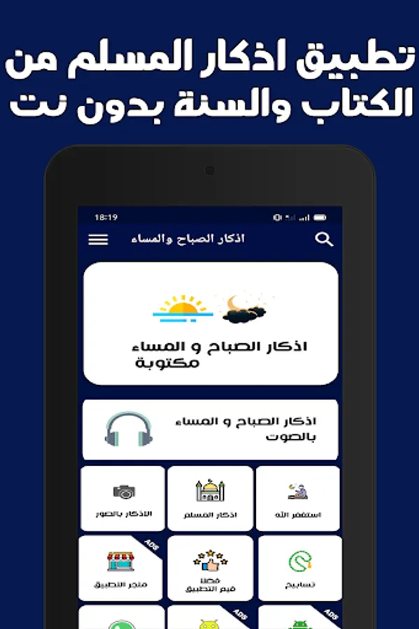 The application of morning, evening and sleep remembrances without the Internet offers you true all remembrances and supplications through daily written Muslim remembrances. It is a diverse application that includes remembrances after the obligatory prayer without the net. Providing the user with all correct supplications that include morning and evening supplications, exit and entry supplications, travel supplications and many Of the available privileges, it can be used whenever the user needs it and in any circumstance. In addition to the morning and evening supplications, Fortress of the Muslim, and the mention of Ramadan with the call to prayer in large font, which is directed to everyone who searches for the following, remembrances, seeking forgiveness, and supplications of Fortress of the Muslim after each prayer, backgrounds of remembrance of the night, The night prayer, remembrances to bring sustenance, remembrances for the dead, remembrances for the Muslim's fortification at all times.
