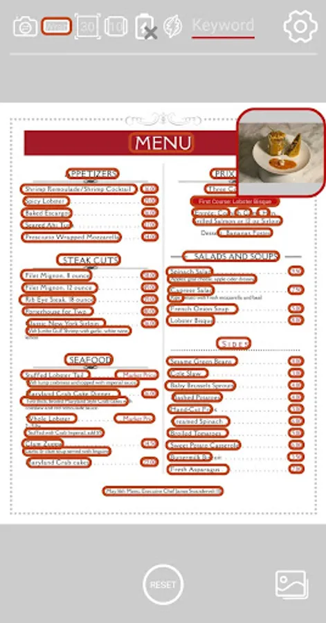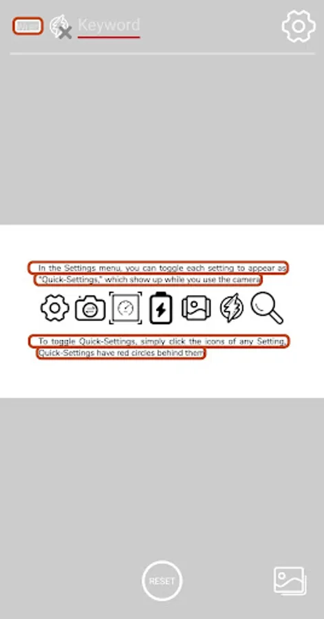 Detext outputs images based on text detected by a camera; anything with words on it can be decorated by pictures! Especially useful for food menus or lists of materials.