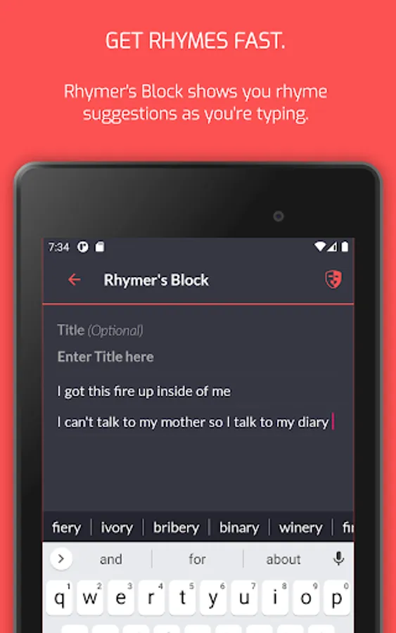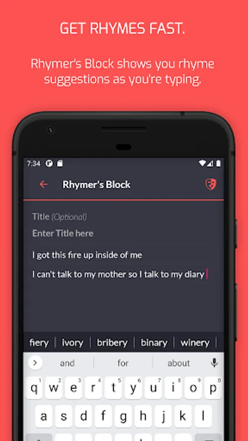 Who has time to search for rhymes? Rhymer’s Block instantly suggests words that rhyme as you type. Keep that inspiration flowing!