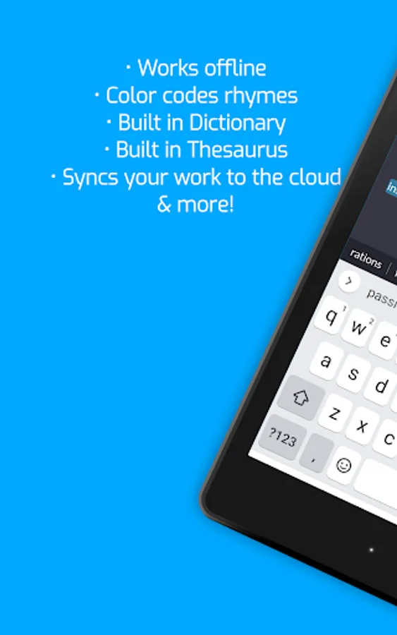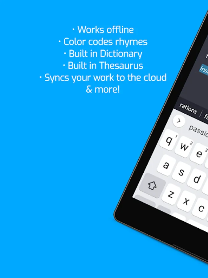 On a plane, subway, or somewhere else you have to take your mobile device offline? With Rhymer’s Block you can keep working with your rhymes. Never put your creativity on hold!