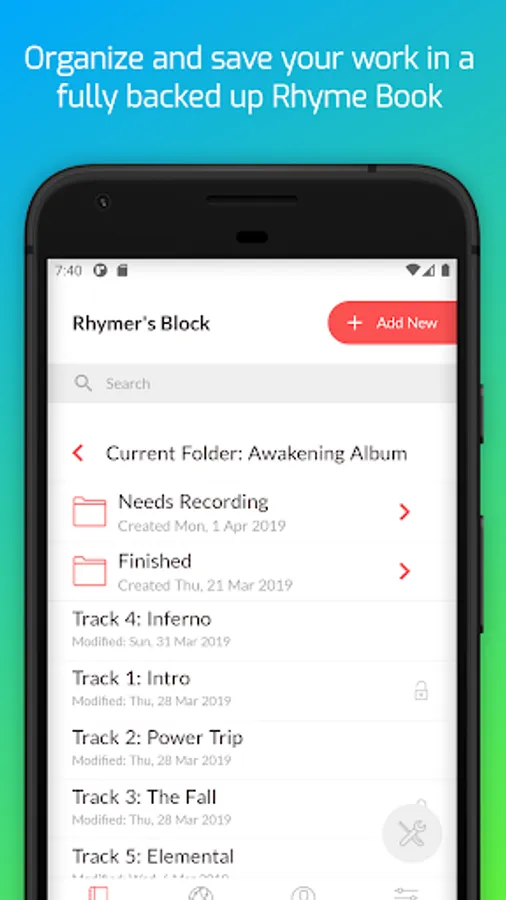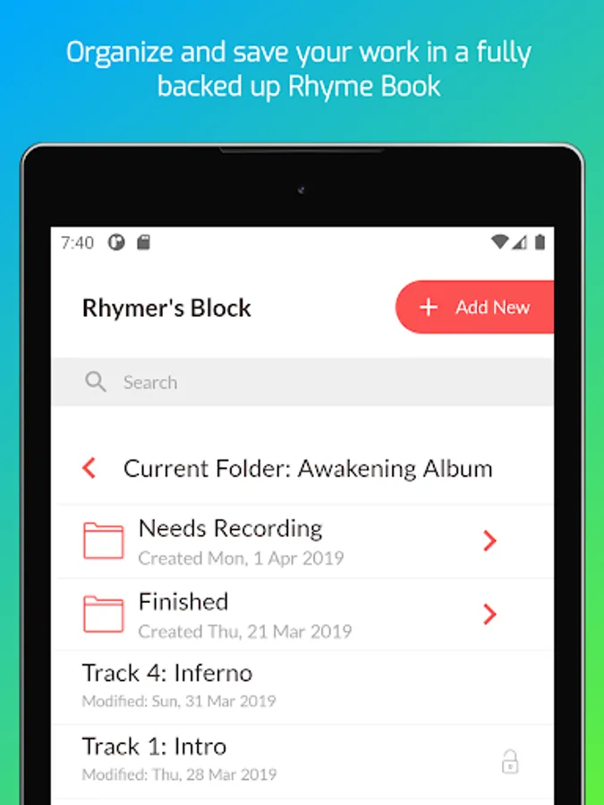 Download Rhymer’s Block today and become the envy of your creative friends who are still carrying around notebooks to create the words for their rap, poem, or song!