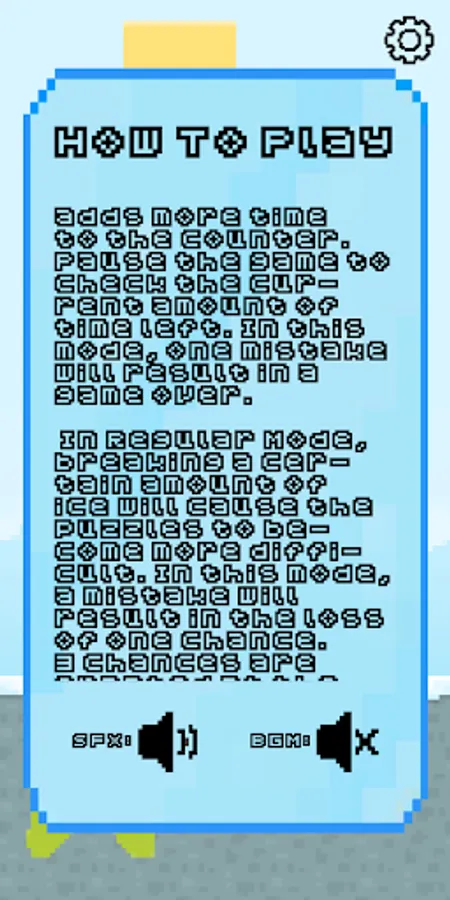 Break through an endless amount of icy puzzles. Move through the mazes by breaking ice and by avoiding already broken ice. Every decision counts, as once ice is broken, there is no going back. Every maze is randomly generated, so the experience will always be new!