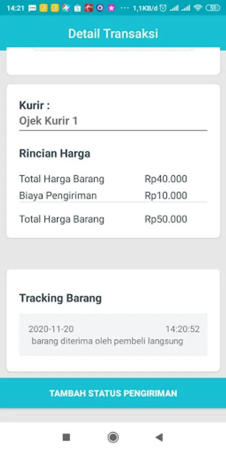 application to assist couriers in carrying out delivery activities and tracking orders for buyers in the RONA application