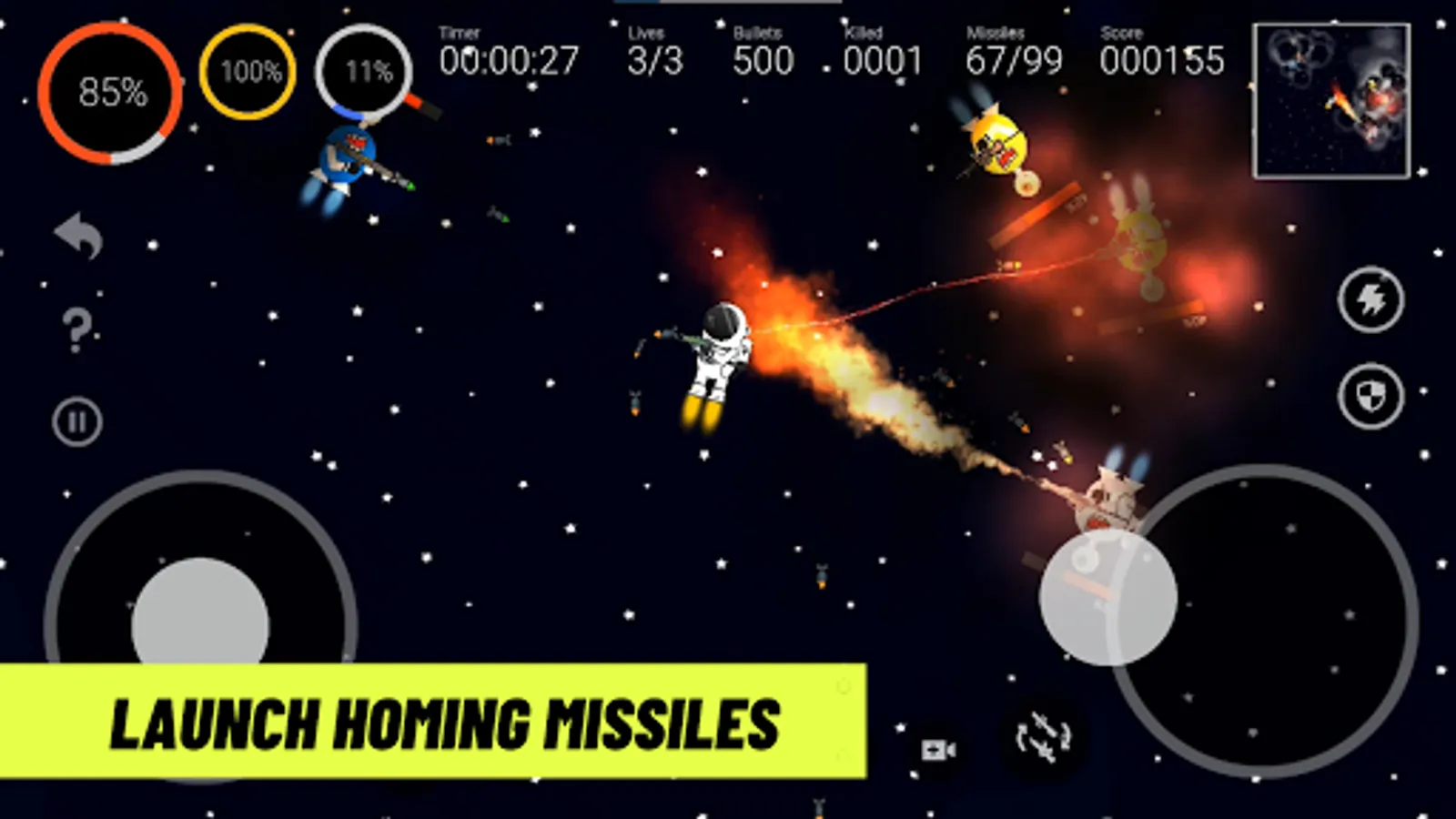 ⭐ Use shooting gun and homing missiles to destroy aliens