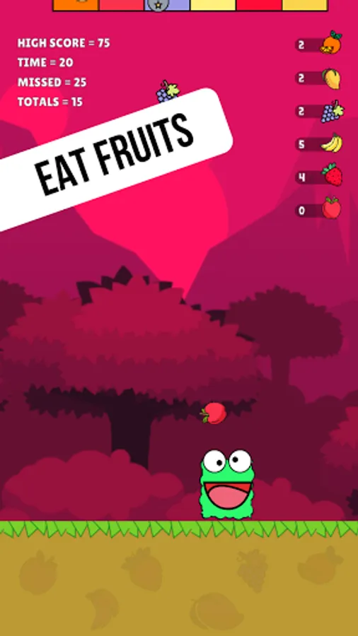 A single character catches fruits falling from the top whenever a fruit catch and gets into the mouth, the fruits will be counted and increase the score.๐ฅ
