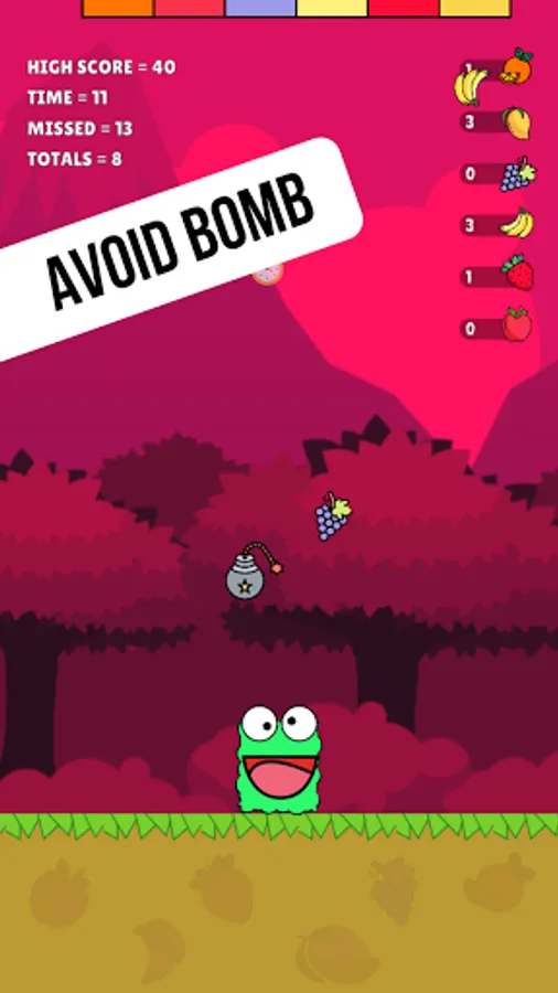 Different types of fruits are spawned you have to catch and eat before sticking into the bomb. ๐ฃ