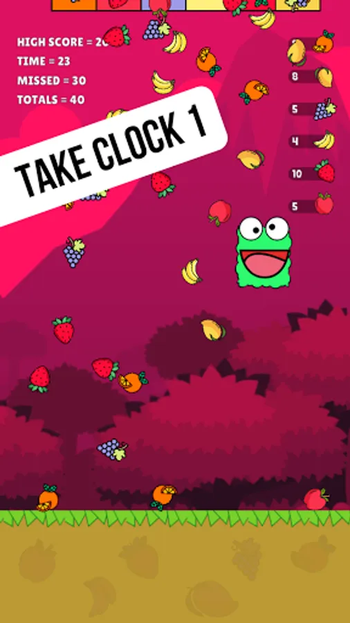 An interesting thing in this casual game is when the player catches a watch he will experience multiple fruits are falling down. โฐ
