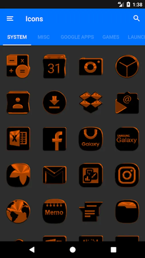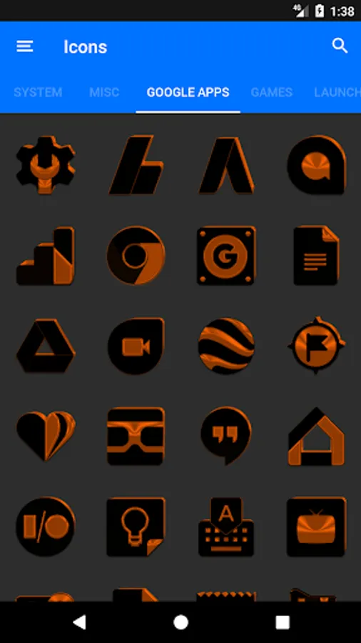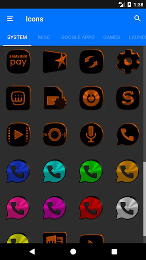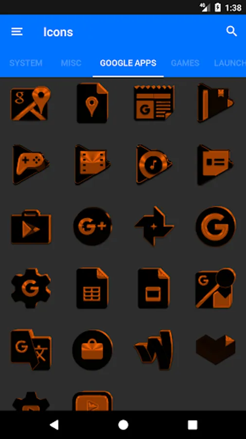 Icon Pack contains 5500+ HD Icons for mobile phones and tablets, Tap on "See More" at the bottom of the page or search for "Ronald Dwk" for more icon packs, there are over 300 icon packs both free & paid to choose from in different colors, shapes and designs.