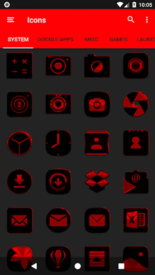 Icon Pack contains 5500+ HD Icons for mobile phones and tablets, Tap on "See More" at the bottom of the page or search for "Ronald Dwk" for more icon packs, there are over 300 icon packs both free & paid to choose from in different colors, shapes and designs.