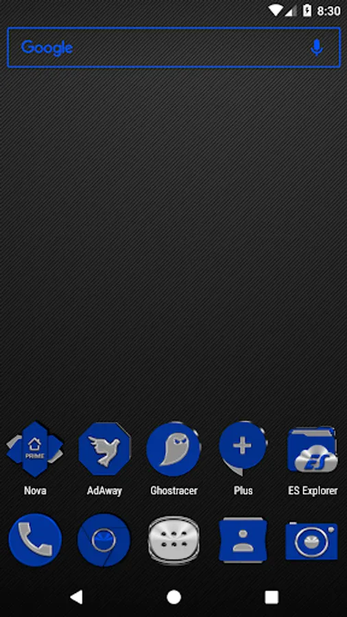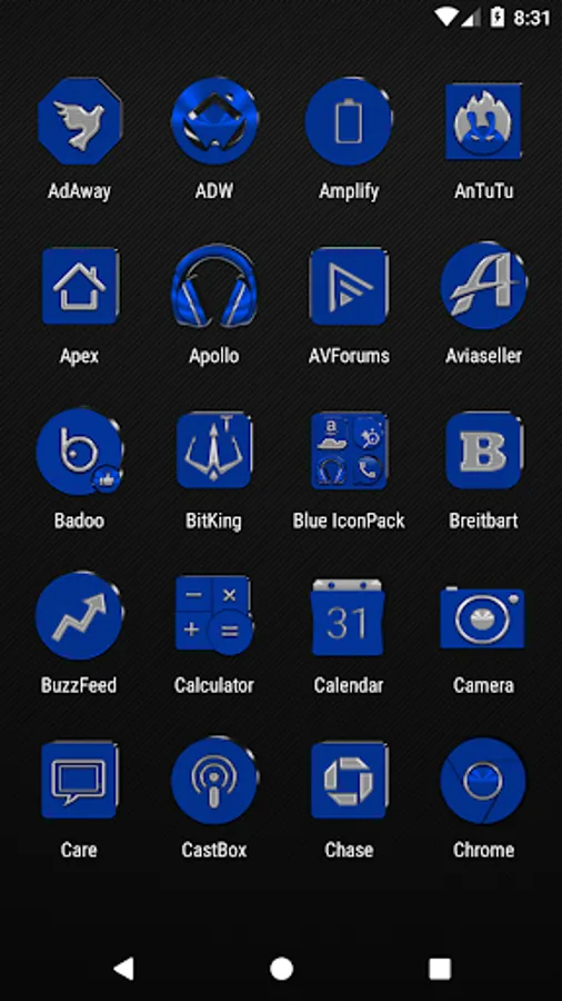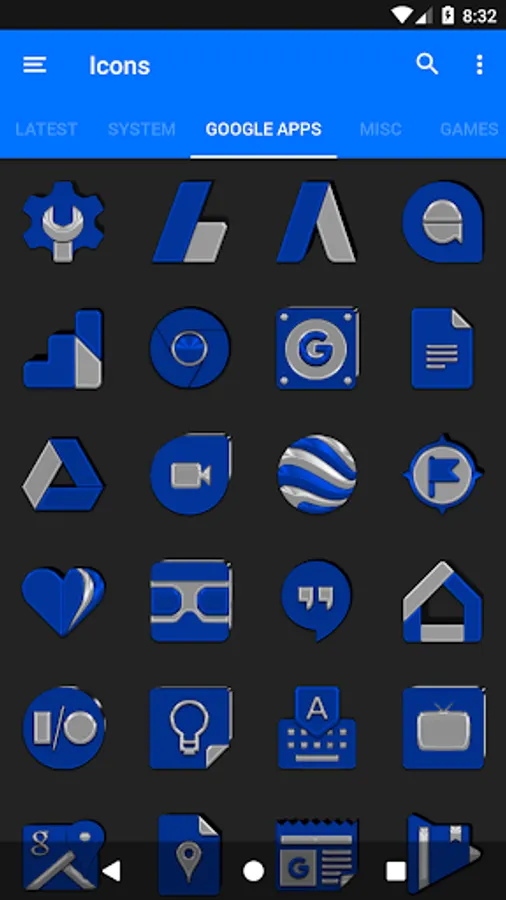 3.Select the icon, this will show your icon packs, select Blue IP and choose your icon, Built-in Search Feature within the App.