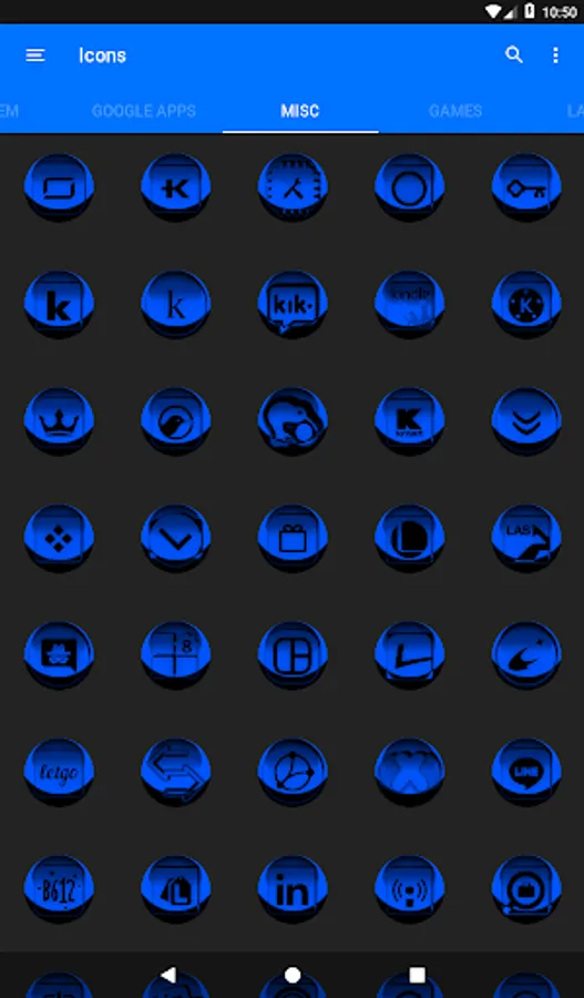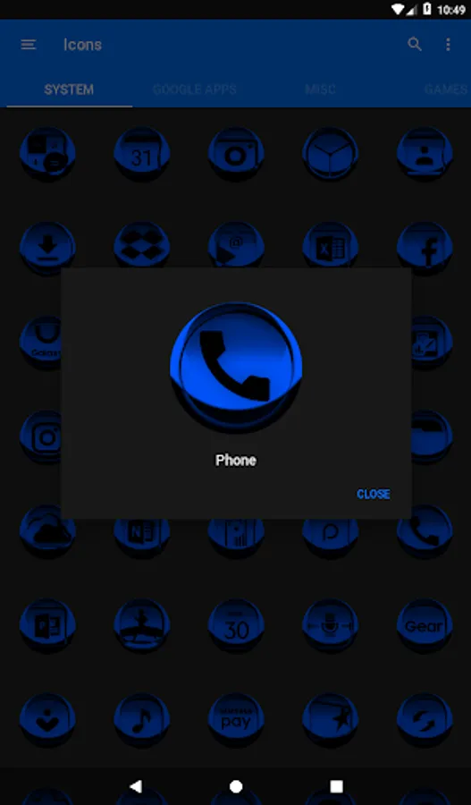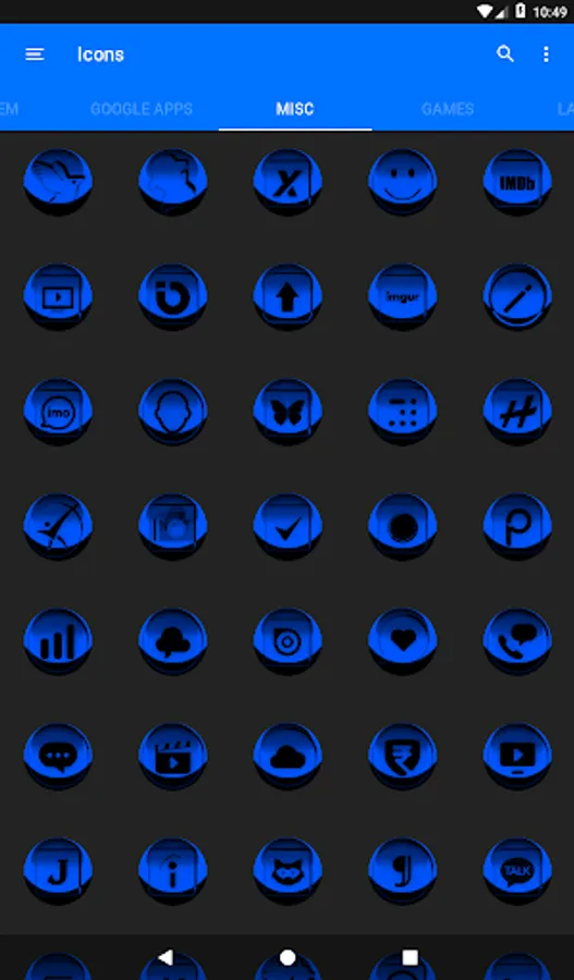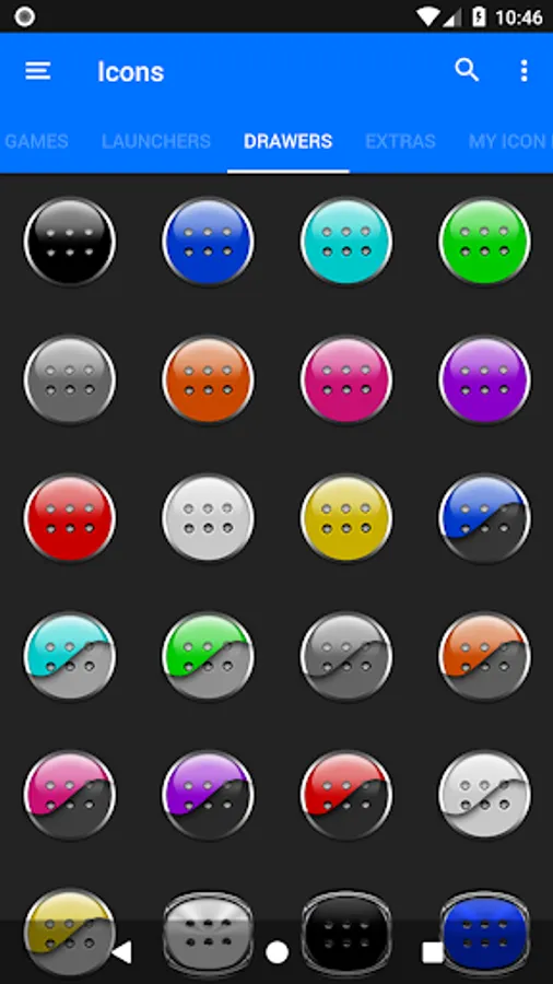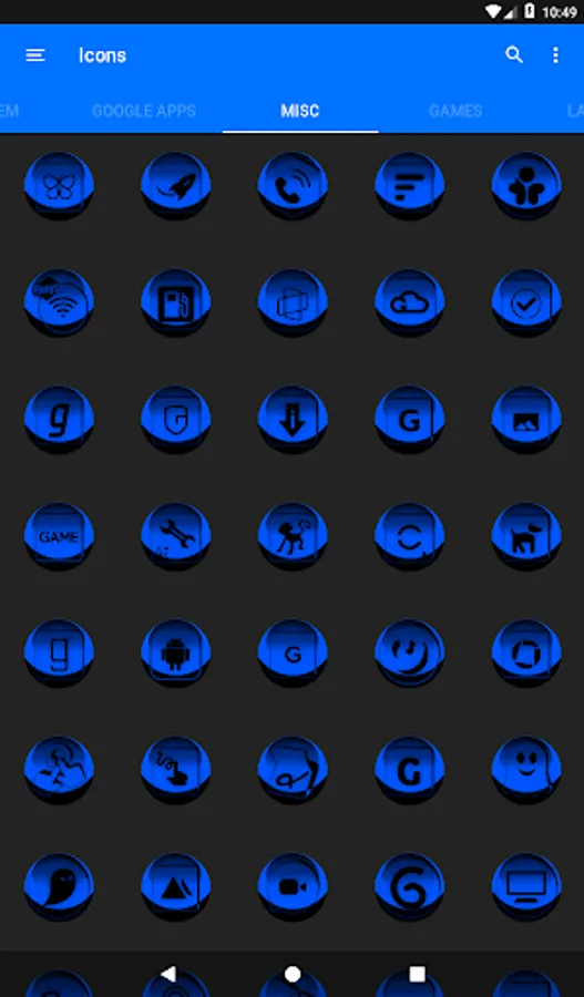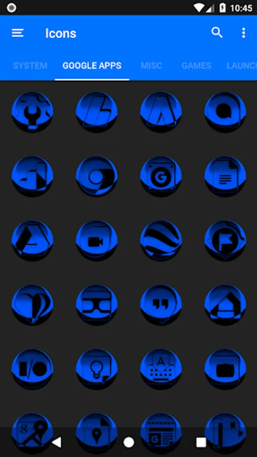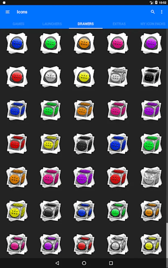 Icon Pack contains 7600+ HD Icons for mobile phones and tablets, tap on "See More" at the bottom of the page or search for "Ronald Dwk" for more icon packs, there are over 300 icon packs both free & paid to choose from in different colors, shapes and designs.