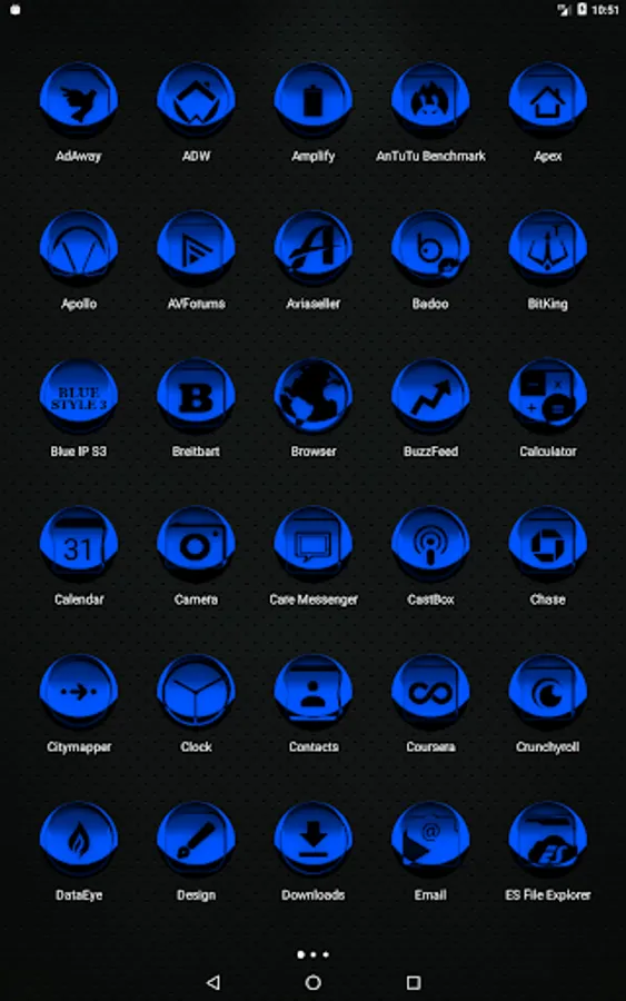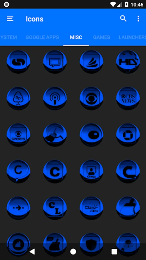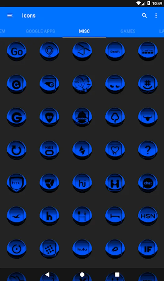 3.Select the icon, this will show your icon packs, select Blue S3 and choose your favourite icon, Built-in Search Feature within the App.