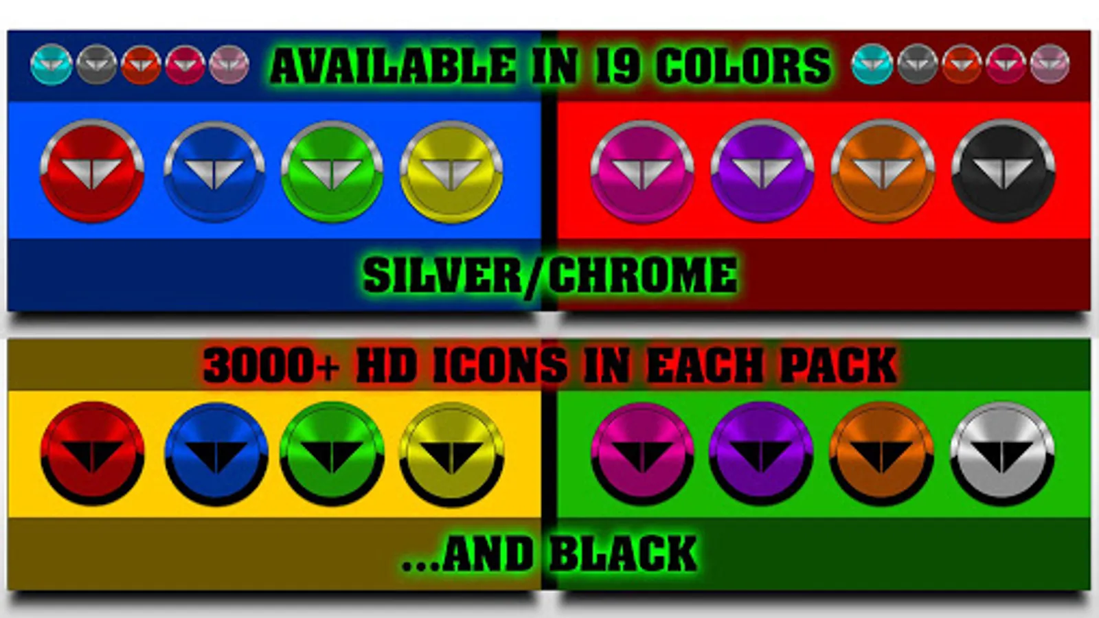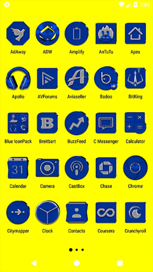 Icon Pack contains 4300+ Icons for mobile phones and tablets, tap on "See More" at the bottom of the page or search for "Ronald Dwk" for more icon packs, there are over 300 icon packs both free & paid to choose from in different colors, shapes and designs.